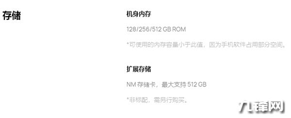 在存儲方面,華為P60支持最大512GB的NM存儲卡擴展。