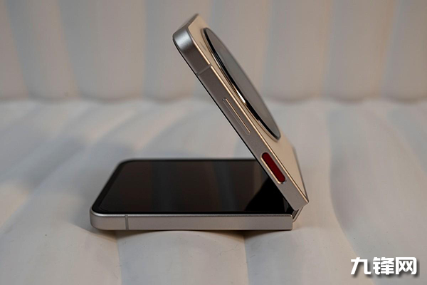 該機(jī)的側(cè)面是電源指紋二合一按鍵及音量控制鍵,電源指紋二合一使用了飽和度較高的紅色,就憑這個(gè)點(diǎn)睛之筆的紅色電源鍵,不夸張的說(shuō)足以讓nubia Flip的顏值提升一截。