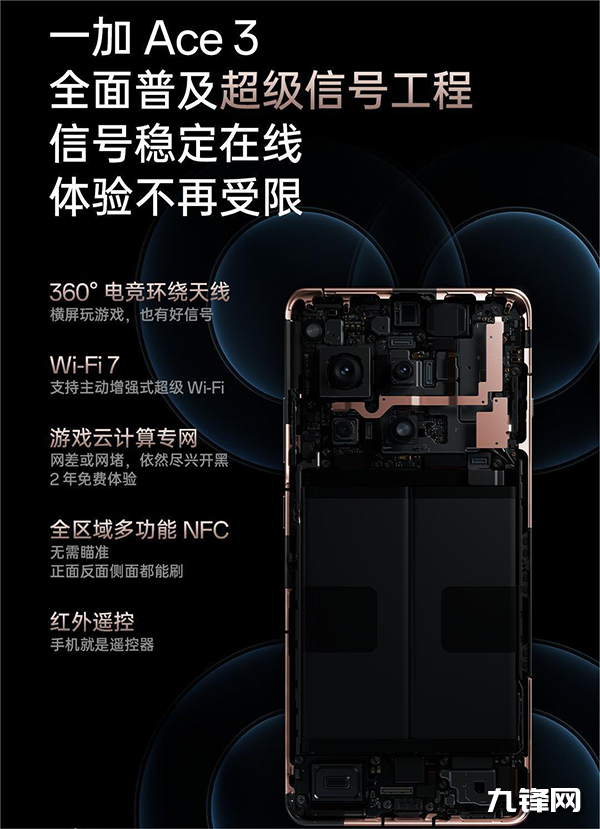 在通信方面,這次的一加Ace3并沒有內(nèi)置信號增強(qiáng)芯片,不過它搭載了一加“超級信號工程”,這是一加在一加12上首發(fā)落地的信號技術(shù),覆蓋包括Wi-Fi、蜂窩數(shù)據(jù)、近場通訊、弱網(wǎng)環(huán)境在內(nèi)的多個核心場景。