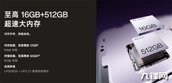 存儲(chǔ)方面采用LPDDR5X+UFS 3.1,最高提供16GB+512GB大容量存儲(chǔ),還能通過(guò)內(nèi)存拓展功能,提供最高12GB的額外虛擬內(nèi)存。