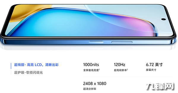 屏幕方面,配置的是一塊6.72英寸1080P LCD屏幕,采用居中單挖孔設(shè)計(jì),是vivo迄今最強(qiáng)的LCD屏,支持120Hz高刷新率,最高支持1000nits峰值亮度,并支持全局DC零頻閃調(diào)光。