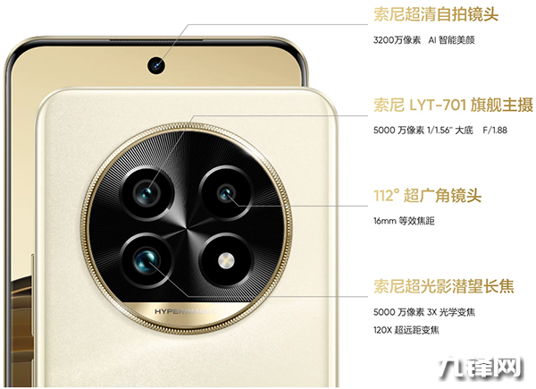 主攝像頭:5000萬像素,索尼LYT701傳感器(相當(dāng)于IMX890的改名版),1/1.56英寸,支持OIS光學(xué)防抖,F(xiàn)1.88光圈,等效焦距24mm,2μm,6P鏡頭