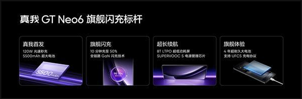 續(xù)航方面,realme真我GT Neo6 SE搭載了5500mAh的大電池和100W秒充,不僅電池容量大,充電速度也非常快。結(jié)合8T LTPO旗艦屏的低功耗特性,真我GT Neo6 SE的續(xù)航能力會是一個很大的優(yōu)勢。