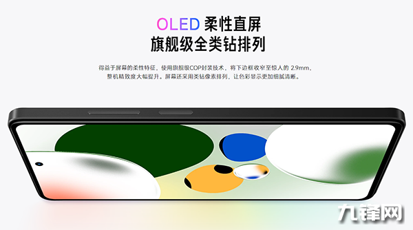 紅米Note12 Pro極速版正面配備了OLED柔性直屏,這塊屏幕四周邊框控制得很窄,幾乎做到了四邊等寬,即使是下巴也控制在了2.9mm。