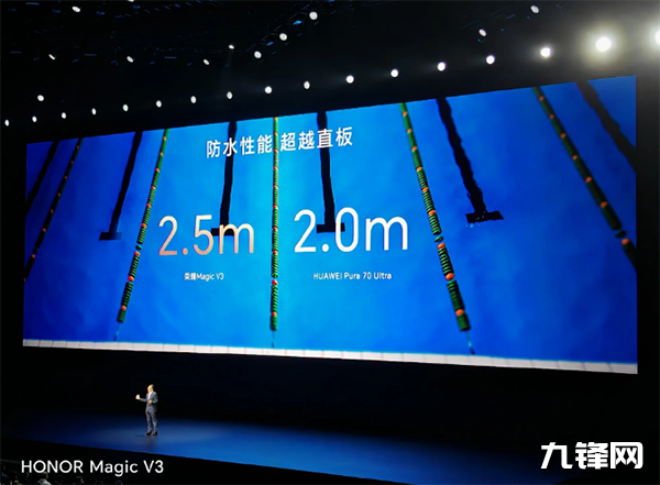 2.5米,榮耀Magic V3具備IPX8級(jí)別防水能力,可在2.5米深水中正常使用,發(fā)布會(huì)上甚至用洗衣機(jī)清洗展示。