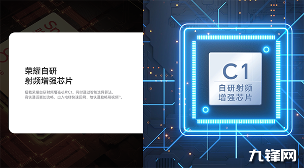 也就是說,這款榮耀100 Pro搭載了一顆榮耀自研的射頻增強芯片,簡單來說就是增強手機整體的信號,比如高鐵、電梯、地下停車場等位置的通話效果。