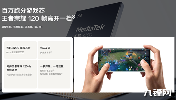 性能方面,搭載的是天璣8200處理器,安兔兔跑分100萬分,配合電競模式和極限穩(wěn)幀技術,王者榮耀的體驗還是非常流暢的。
