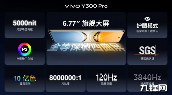 vivo Y300 Pro帶來vivo首款同檔首款的全等深微四曲屏,屏幕四邊四角等深彎曲,打造連貫貼合手部握持的40°黃金弧度,很大程度兼顧握持體驗與平整顯示。