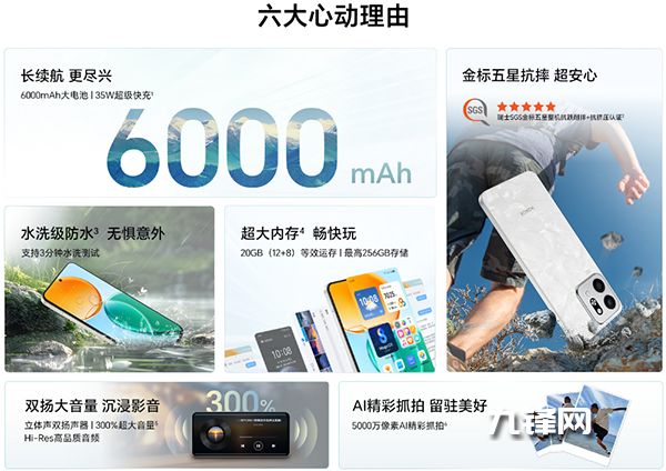 電池:6000mAh超大容量電池,支持35W快速充電,不支持無線充電;