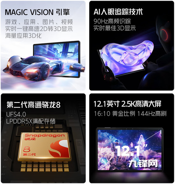 設(shè)計(jì)上,紅魔平板3D探索版采用立邊造型,背部LOGO橫向布局,彰顯個(gè)性與時(shí)尚,前后均配備雙3D攝像頭,結(jié)合AI人眼追蹤技術(shù)和微米級(jí)液晶透鏡,支持90Hz頻率追蹤,帶來(lái)前所未有的3D拍攝與觀看體驗(yàn)。