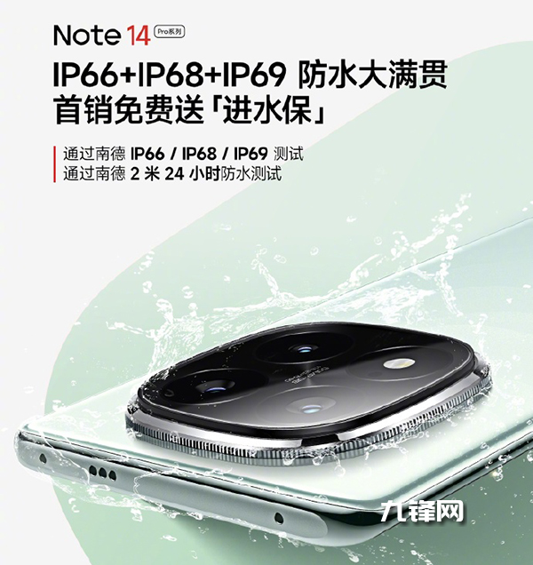 IP66/IP68/IP69級別,這次的紅米Note14 Pro+通過了南德IP66/IP68/IP69測試和南德2米24小時防水測試,防水等級還是比較高的。