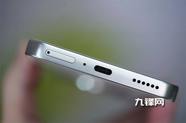 并且整機(jī)中框采用直角立邊,雖然不是金屬但采用了銀色的類膚質(zhì)處理,還是比較有質(zhì)感的,頂部為揚(yáng)聲器開孔,麥克風(fēng),底部常規(guī)的SIM卡槽、Typec接口,底部揚(yáng)聲器,右側(cè)為音量鍵,然后紅色的按鍵即是電源鍵也是AI鍵。