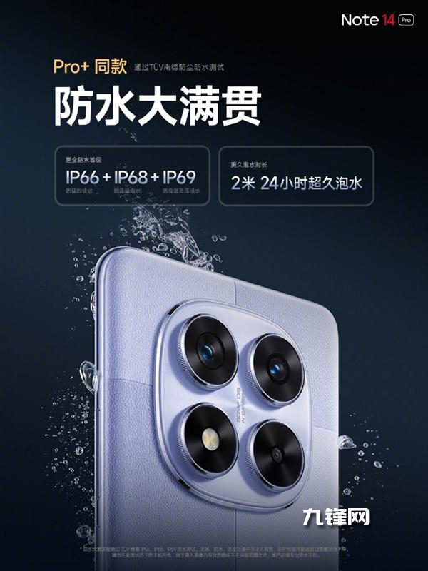 也就是說,這款Note14 Pro具有同款金剛架構(gòu),通過1.8米跌落測試,并且具備IP66+IP68+IP6 防水大滿貫。