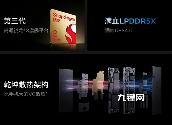 在核心性能上,拯救者Y700搭載第三代配置的是驍龍8處理器,UFS4.0 4200Mbps高速閃存以及LPDDR5X 8533高頻內(nèi)存,同時(shí)還配備乾坤散熱架構(gòu),擁有10004mm2的VC面積,以保證持續(xù)性能輸出。