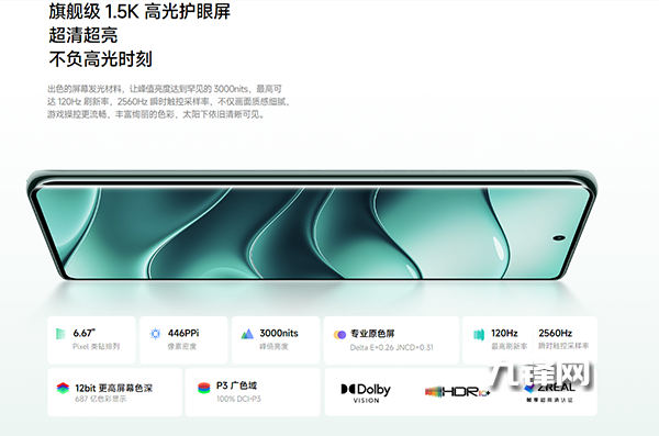屏幕方面,配備一塊6.67英寸1.5K高光護眼屏,120Hz刷新率,峰值亮度升級至3000nits,支持20000級自動亮度調節(jié)。
