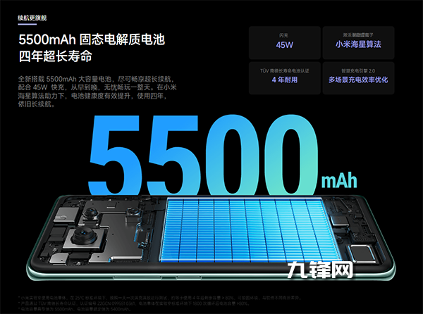 續(xù)航方面,紅米Note14 Pro采用5500mAh電池+45W有線充電方案,半小時可充至50%電量,海星算法及澎湃電池管理系統(tǒng)加持下,可實現(xiàn)四年超長循環(huán)壽命。