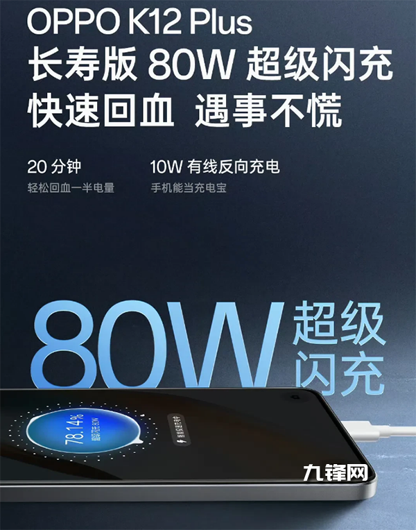 80W,OPPO K12 Plus配置的是6400mAh的大容量電池,支持的是80W有線充電。