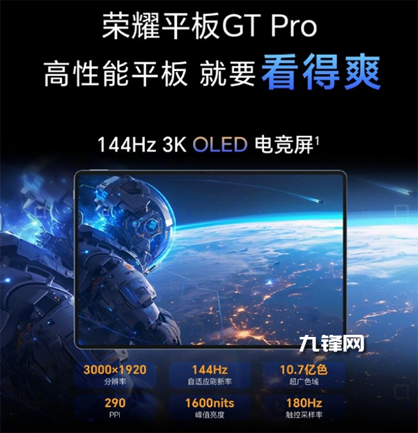 在配置上,這個榮耀平板GT Pro配備一塊12.3英寸OLED大屏幕,擁有3K級別高清分辨率、1600尼特峰值亮度及144Hz高刷新率,屏占比高達92%。