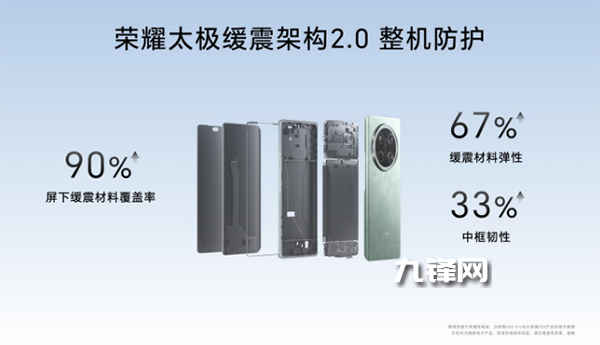 該機(jī)采用太極緩震架構(gòu)2.0+四角蜂窩設(shè)計,新機(jī)屏下緩震材料覆蓋率90%、緩震材料彈性提升67%、中框韌性33%,新機(jī)抗跌落能力提升52%、跌落形變減少79%,同時支持360°全場景防水。