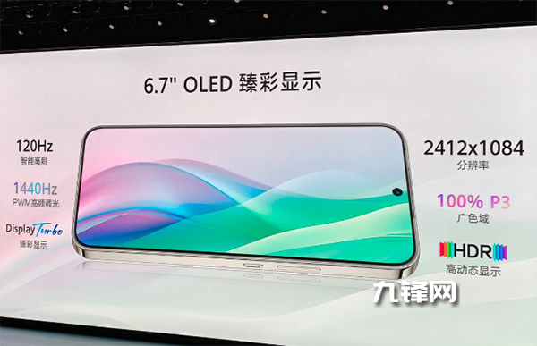 屏幕:尺寸是6.7英寸,分辨率是2412×1084,OLED直屏,支持120Hz刷新率,300Hz觸控采樣率,1440Hz高頻PWM調(diào)光,支持10.7億色,P3 廣色域,鋰硅鋁深度二強(qiáng)玻璃;