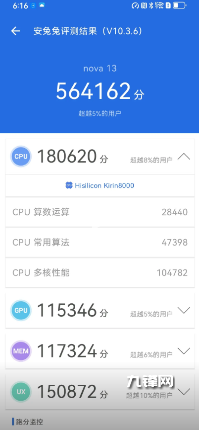 56萬(wàn)分,華為nova13搭載的是麒麟8000,安兔兔軟件測(cè)試跑分在56萬(wàn)左右。