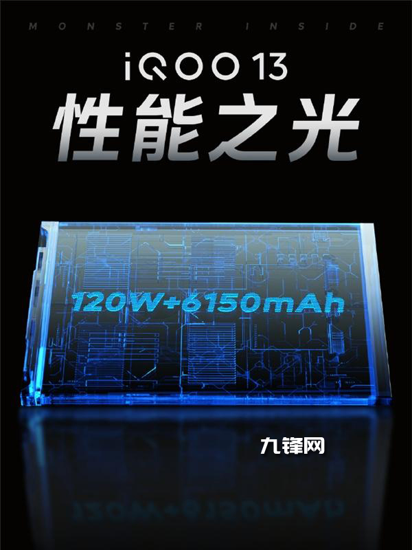 6150mAh,這次的iQOO 13帶來等效6150mAh大電池,支持120W超快閃充。