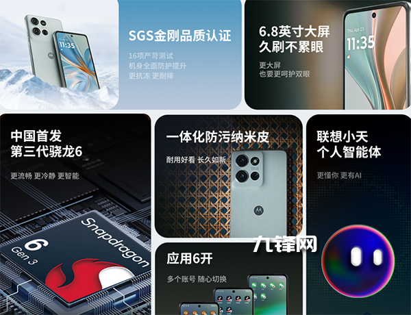 其它:支持NFC,側(cè)邊指紋識別,杜比雙揚聲器,支持IP68防水,WiFi6E,支持聯(lián)想小天個人智能體。