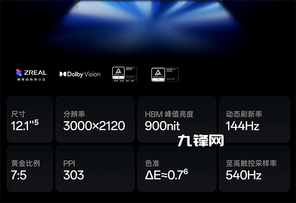 屏幕上配置的是12.1英寸屏幕分辨率為3000×2120(屬于是3K級(jí)別),擁有303PPI,峰值亮度可以達(dá)到900nit,具備優(yōu)秀的顯示效果,同時(shí)ΔE≈0.7。