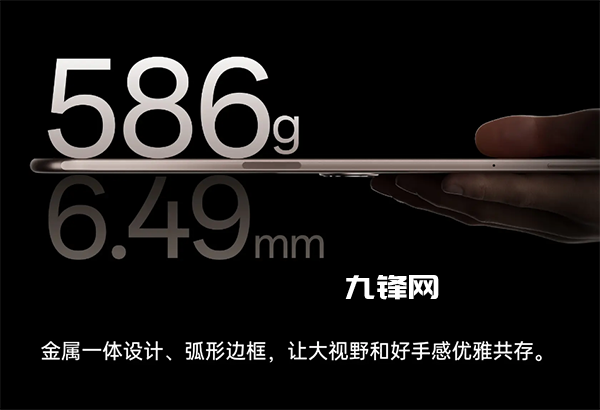 作為一款有著高性能與大電池的平板,它的機(jī)身厚度僅有6.49mm,視覺(jué)觀感頗為纖薄,配合僅有586克的重量,一定程度上提升了拿起使用平板時(shí)的體驗(yàn)。