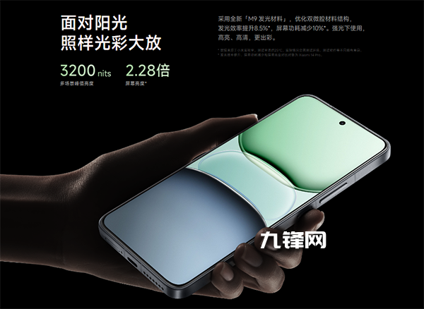 屏幕上采用了全等深微曲屏,四曲包裹式中框,華星光電6.73英寸3200×1440分辨率的OLED等深四曲屏,基于M9發(fā)光材料(雙層微腔發(fā)光結(jié)構(gòu)),比小米14 Pro的2K屏功耗降低24%,擁有媲美友商 1.5K 屏的功耗表現(xiàn)。