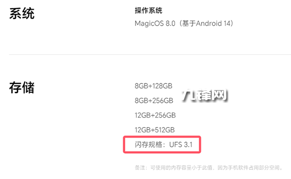 榮耀X60閃存規(guī)格是UFS3.1還是2.0