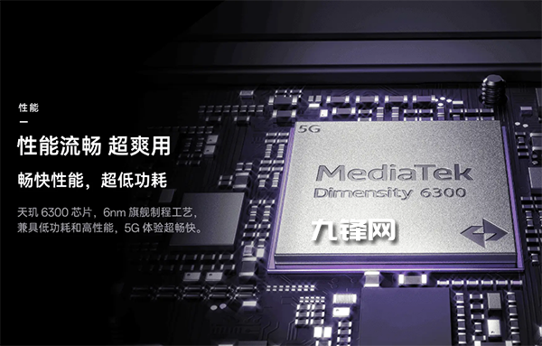 性能上,該機配置的處理器是天璣6300芯片,采用了6nm工藝制程,目前最高是3nm工藝制程。