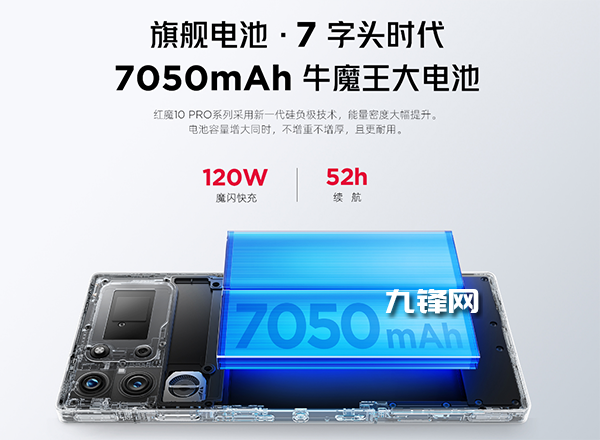 紅魔10 Pro采用的是6500mAh電池,紅魔10 Pro+采用的是7050mAh電池。