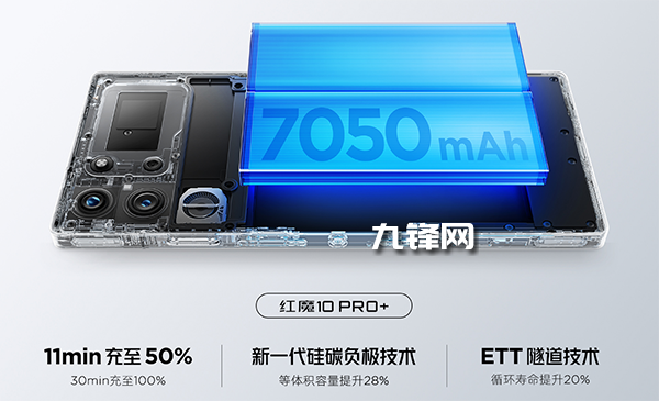 不過這代紅魔10 Pro系列稍微有些不同了,臺紅魔10 Pro選擇了80W+6500mAh大電池的組合,而紅魔10 Pro+則采用了120W+7050mAh的恐怖方案,并且均支持充電分離功能。