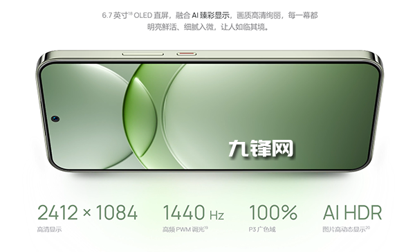 屏幕上配備一塊6.7英寸OLED直屏,支持120Hz刷新率,低亮度下是1440Hz高頻PWM調(diào)光,中高亮度下是DC調(diào)光,300Hz觸控采樣率,屏幕色彩支持10.7億色和P3廣色域。