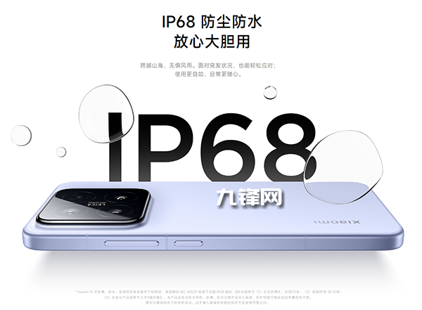 小米15具備IP68防水防塵等級(jí),并且是在1.5米的無(wú)流動(dòng)清水中試驗(yàn)時(shí)間30分鐘,意味著它可以在一定深度及時(shí)間內(nèi)抵抗水分的侵入,這對(duì)經(jīng)常出門的人尤其重要。