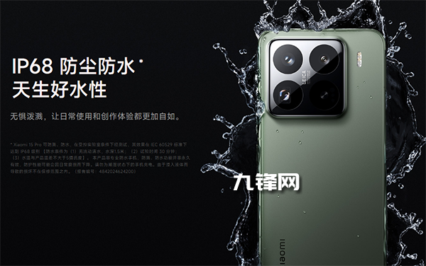 也就是說,小米15 Pro是支持IP68防水的,并且能在1.5米深的無流動清水中保持30分鐘。