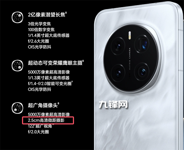 可以看出,這個(gè)手機(jī)是有微距功能的,并且是2.5cm微距拍攝能力,能夠捕捉更廣闊的視角和更細(xì)膩的細(xì)節(jié)。