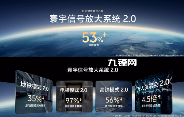 在寰宇信號放大系統(tǒng)2.0,在自研射頻增強芯片加持下,通信能力整體提升53%,高鐵、地鐵、萬人演唱會等多場景,皆快人一步。