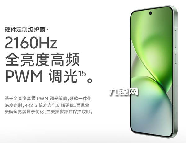 也就是說,該機支持2160Hz全亮度高頻PWM調(diào)光,減少低亮度顯示時出現(xiàn)的頻閃、亮度跳變現(xiàn)象,搭配夜貓護眼2.0、AI場景亮度等軟件算法,全場景保護用戶用眼健康。