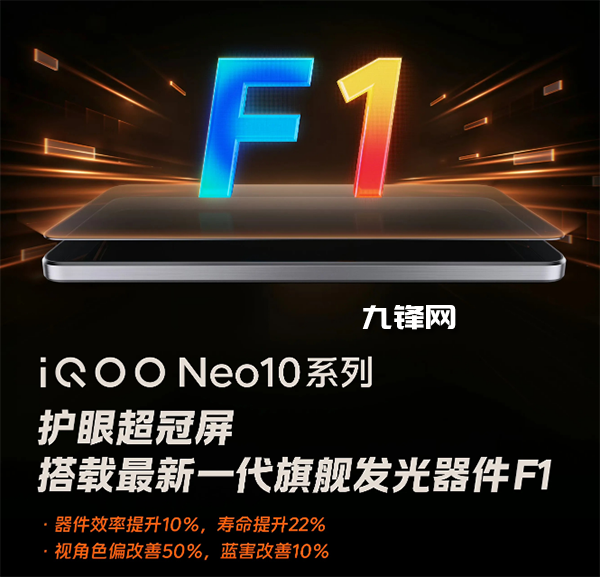 屏幕方面,iQOO Neo10系列官宣搭載維信諾新一代發(fā)光材料體系F1,器件效率提升10%、壽命提升22%、視角色偏改善50%、藍(lán)害改善10%。