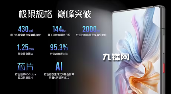 屏幕:尺寸是6.85英寸,分辨率是2688×1216(屬于是1.5K級(jí)別),供應(yīng)商是京東方,Q9+發(fā)光材質(zhì)的OLED柔性直屏,局部峰值亮度2000nit,支持144Hz刷新率,2500Hz瞬時(shí)觸控采樣率,2592Hz的PWM高頻調(diào)光,10bit色深,100% DCI P3色域,430PPI,UDC Ultra獨(dú)立屏顯芯片,第二代龍犀玻璃(GG7i),1.25mm窄黑邊;