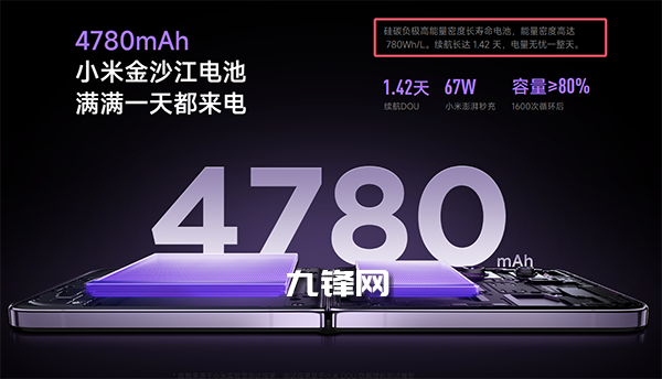780Wh/L,小米MIX Flip配置的是4780mAh的硅碳負(fù)極高能量密度長(zhǎng)壽命電池,能量密度高達(dá)780Wh/L。