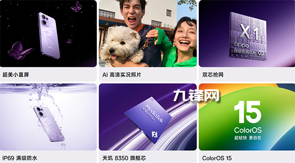 其它:支持紅外遙控和NFC,IP66+IP68+IP69防塵防水,WIFI6,藍(lán)牙5.4,立體聲雙揚(yáng)聲器,短焦指紋,X軸線性馬達(dá),單頻GPS,搭載ColorOS15系統(tǒng)。