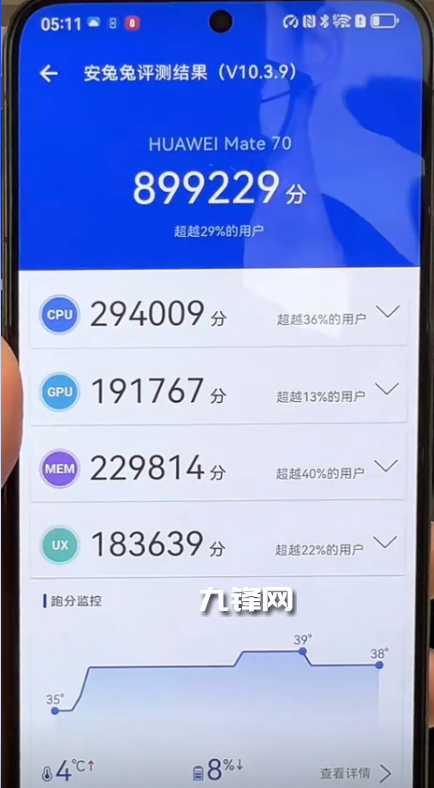 也就是說,華為Mate70標(biāo)準(zhǔn)版搭載的是麒麟9010芯片,實測性能跑分在89萬左右。