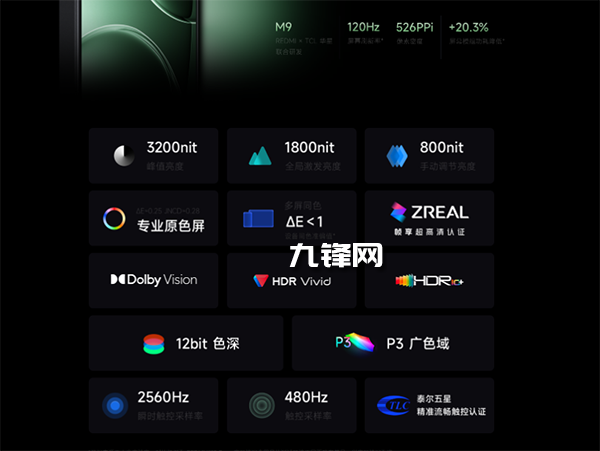 手動(dòng)最高亮度800nit、全屏激發(fā)亮度1800nit、局部峰值亮度3200nit。