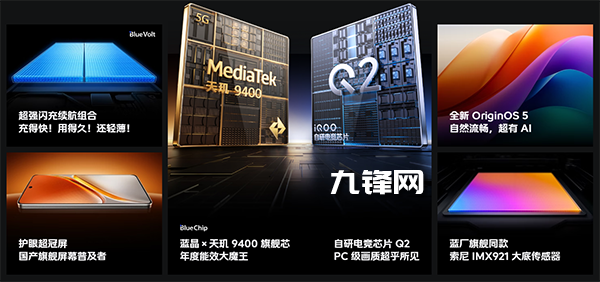 性能:搭載的是天璣9400處理器,臺(tái)積電3納米工藝,另外還有iQOO自研電競芯片Q2(也就是獨(dú)顯);