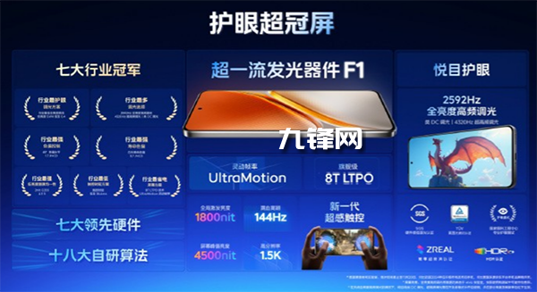 屏幕刷新率為LTPO技術(shù)下的1-144Hz智能動態(tài)高刷,局部峰值亮度可達(dá)4500nit,全局激發(fā)亮度為1800nit,無論是在強(qiáng)光下還是在低光環(huán)境中,都能為用戶提供清晰、明亮的屏幕顯示效果。