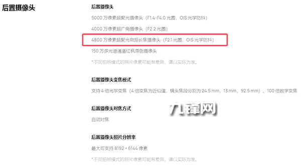 其中主攝支持F1.4-F4.0可變光圈,Pro為RGGB,Pro+為RYYB攝像頭,長焦鏡頭支持4倍光學變焦,擁有F2.1超大光圈。
