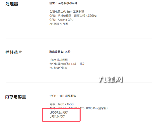 紅米K80 Pro是什么規(guī)格的內(nèi)存和閃存UFS